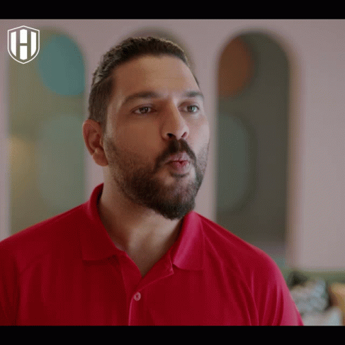 Indian cricketer Yuvraj Singh, also known as Yuvi, makes a playful kiss face while wearing a red polo shirt.