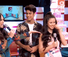 Zeke Domingo and Kisses Delavin share a moment on stage, with Kisses laughing while Zeke speaks into a microphone.