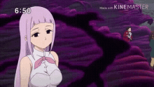 Zeldris The Piety: A character with light purple hair stands against a dark purple background.