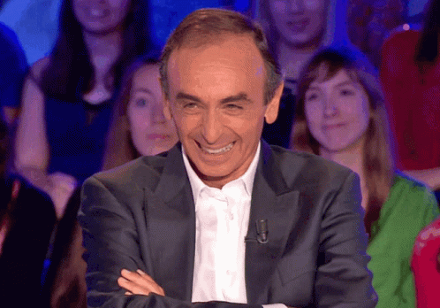 Eric Zemmour, also known as EZ or Le Z, is seen smiling and speaking to a large crowd of people.