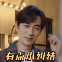 Zhu Yi Long (Longgege) smiles with a slightly conflicted expression, accompanied by the caption 'A little bit of a dilemma'.